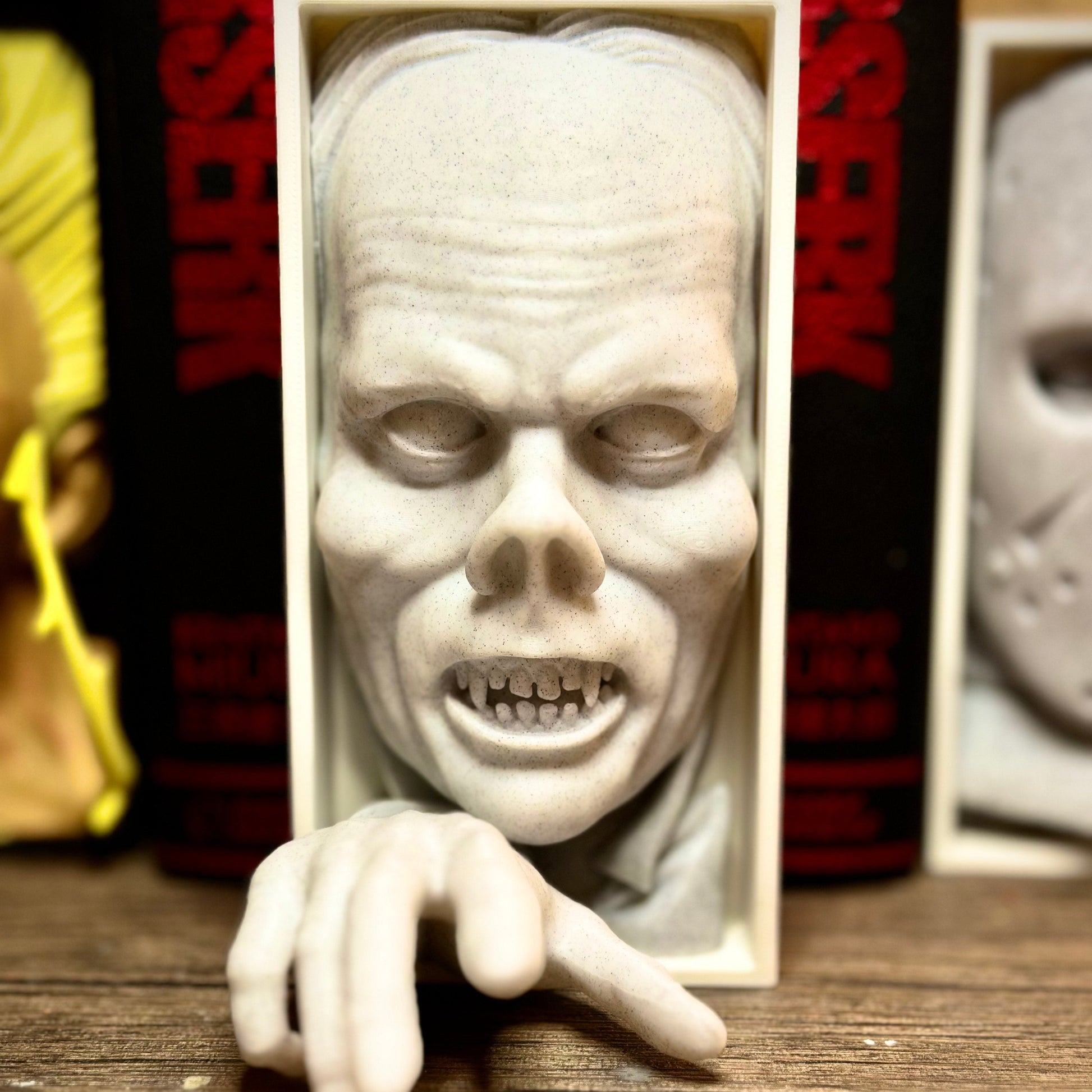 If you're looking to have your shelves be a cut above the rest, then consider purchasing one of our character nooks! These are 3D printed in house, sanded, finished, and assembled by hand. With characters ranging from horror, fantasy, anime, video games, and so much more, there is guaranteed to be a design that fits perfect amongst your collection!